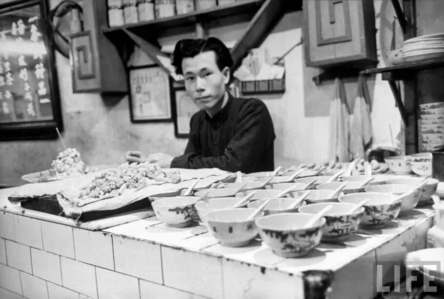 1949年3月,广州,一个在西河街的餐饮摊。卡尔·迈当斯/摄。