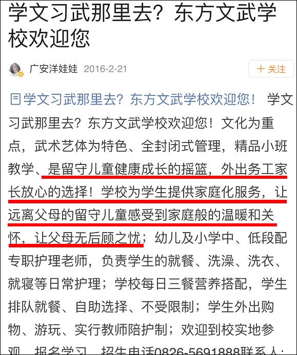 更不堪的是,许多武术学校成了为外出务工者子女的 “托管所”。据中国网,“河南理工大学体育系王永胜老师调查发现,武校学生有90%来自农村,学生的父母文化程度不高,一些家长平时对孩子的管教均以打骂为主,家长把武术学校当成‘托儿所’,一般只要求学校能够看住孩子就行。’