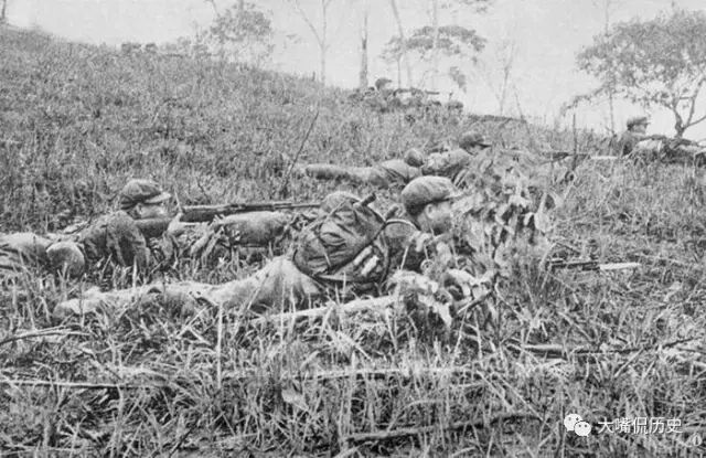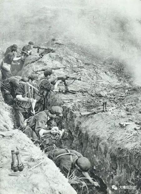 我军在阵地前便打便挖战壕。
