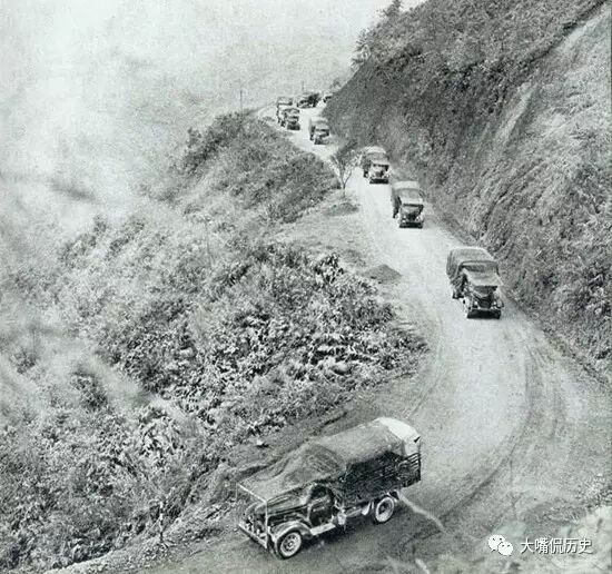 解放军车队翻山越岭运向前线送战争物质。