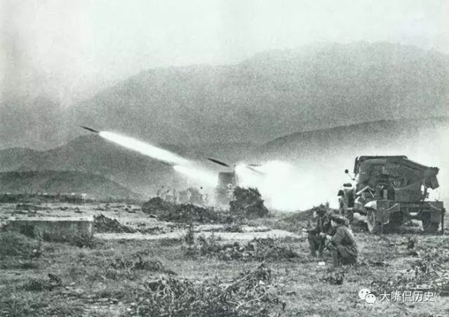 解放军火箭炮对越军发起炮火攻击。