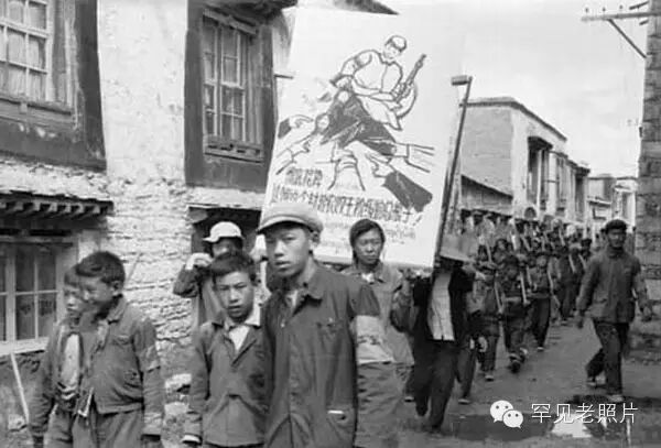 1966年8月19日,拉萨召开庆祝文化大革命大会后,红卫兵组织开展起来。很快拉萨小学生也成了红卫兵,他们在老师的带领下,扛着丑化达赖喇嘛的漫画和铁锹,宣传破四旧。