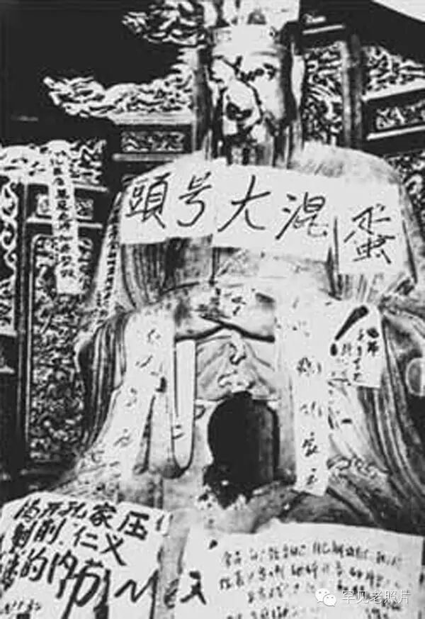 孔庙里的孔夫子身上被红卫兵贴满了大字报。