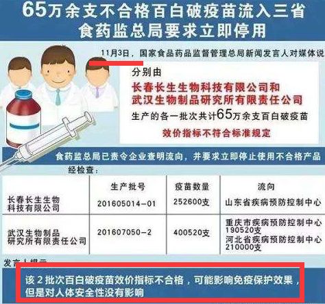 如今,根据药监总局的官方信息来看,涉事的武汉生物科技百白破疫苗中,百日咳疫苗存在药效偏低的情况,而长春长生则存在百日咳和破伤风两种疫苗效价偏低。