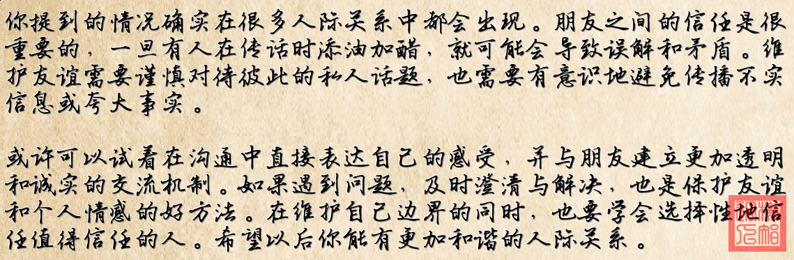 (Verse 1) 咖啡凉了第三杯 话题在唇齿间迂回 你说他只是无心误会 我却听见故事被篡改的结尾 (Chorus) 信任是易碎的琉璃 经不起添油加醋的游戏 每句“听说”都带着刺 把真心扎成筛子 (Verse 2) 短信提示音在深夜响起 截屏里的对话变了语气 原本温暖的分享时刻 变成需要证伪的谜题 (Bridge) 我们本该是安全的树洞 却变成谣言加工的酒桌 当真诚被二次创作 还剩多少真心值得托付 (Outro) 给真相留个座位吧 让流言在阳光下融化 若还想留住这段年华 就用坦诚浇灌爱的枝桠