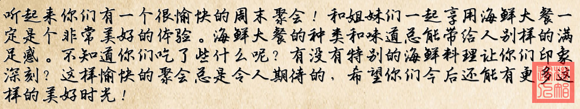 这些图片展示了一次与姐妹们相聚的海鲜大餐活动。具体内容如下: