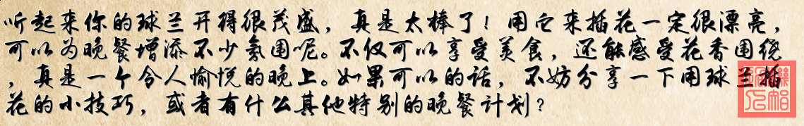 《厨房与花房》 白瓷盘盛着黄昏的暖光 炖煮的香气在屋檐飘荡 刀锋与砧板轻轻合唱 这是家最古老的吟唱 球兰在窗台舒展裙摆 星形花朵像月光剪裁 指尖沾着泥土的芬芳 等待蝴蝶来驻足拜访 炊烟缠绕着花香起舞 时光在围裙褶皱停驻 当季食材与晨露对话 生活在此刻不必匆忙 餐桌摆满四季的馈赠 花开花落都值得歌颂 在这方寸天地里耕种 收获平凡却璀璨的梦