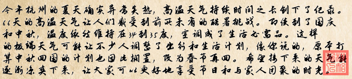 《节气倒计时》 梧桐叶在窗外打着卷 空调外机哼唱着夏天 六十六天高温的缠绵 刷新了这座城的极限 手机屏幕亮起在枕边 明月倒计时还剩两天 月饼甜不过视频连线 太平洋隔开团圆夜 三十四天后雪花飘落 八十九天外烟花闪烁 一百三十六夜等候 红灯笼会照亮归途 热浪模糊了季节边界 节气在手机更迭 我收集每个倒计时的夜 等冬天真正降临人间 空调继续转动着圆圈 日历撕到立冬那一页 忽然想念飘雪的屋檐 和没说完的春节前言