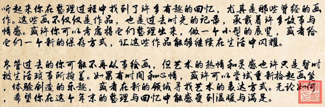 这些作品反映了画家的艺术造诣和对动物的表现力。看起来,这位曾经的画家有很高的艺术水平,尽管现在不再作画,但过去的作品依然留存。
