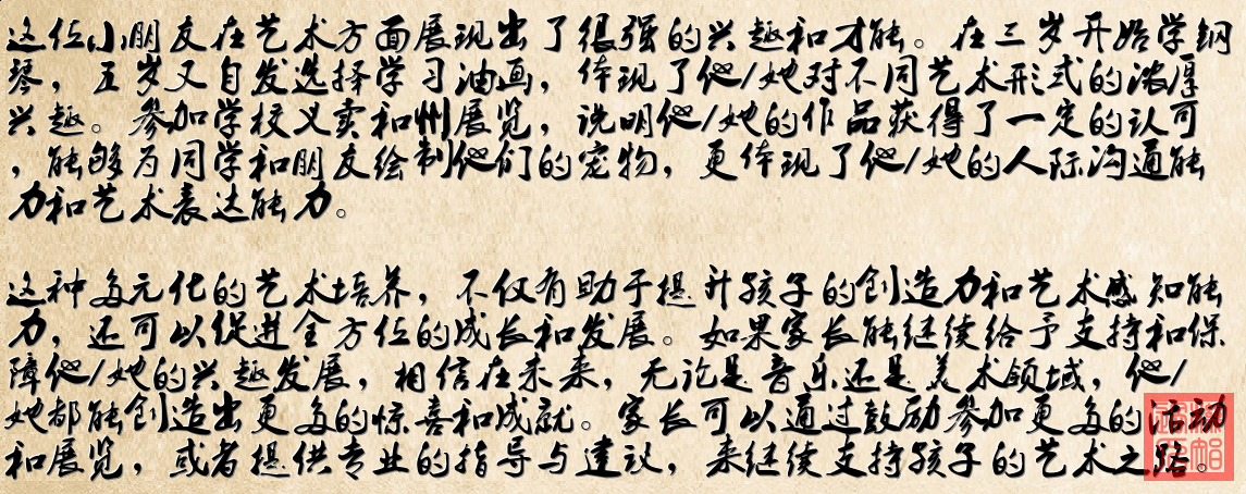 这幅图展示了一幅狗狗的素描作品。作品细节丰富,狗狗的眼神以及毛发都被刻画得非常逼真。这种素描作品可能是孩子为同学或朋友画的宠物。根据你提供的背景,这个孩子从小学习钢琴和绘画,后来参加了学校的义卖和州里的展览。这个画作展示了孩子在绘画方面的才华和技巧。