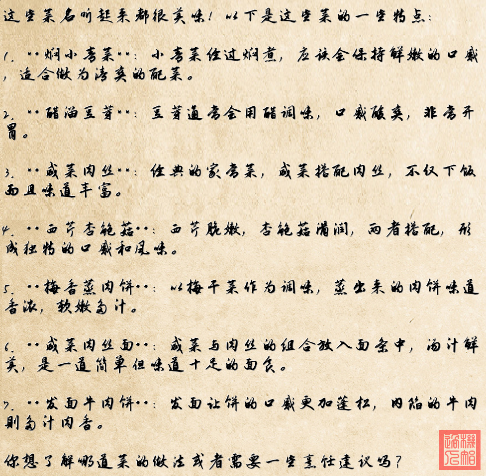 综上,有八道菜品展示,分别展示了不同风味的家常美食。