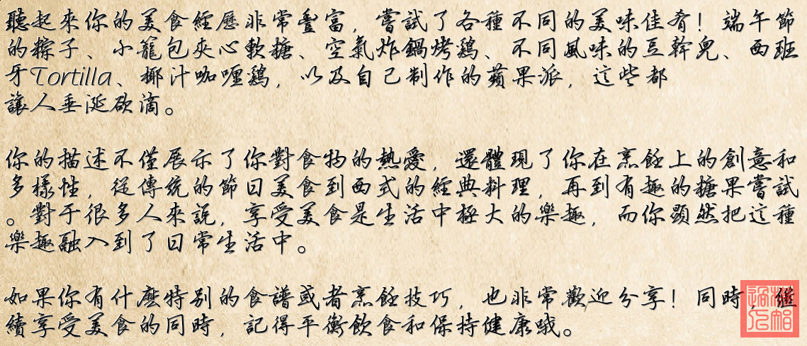 这些美食展现了多元化的味觉体验,从传统的中式端午节粽子到异国风味的Tortilla,再到现代家用电器制作的家常菜肴。