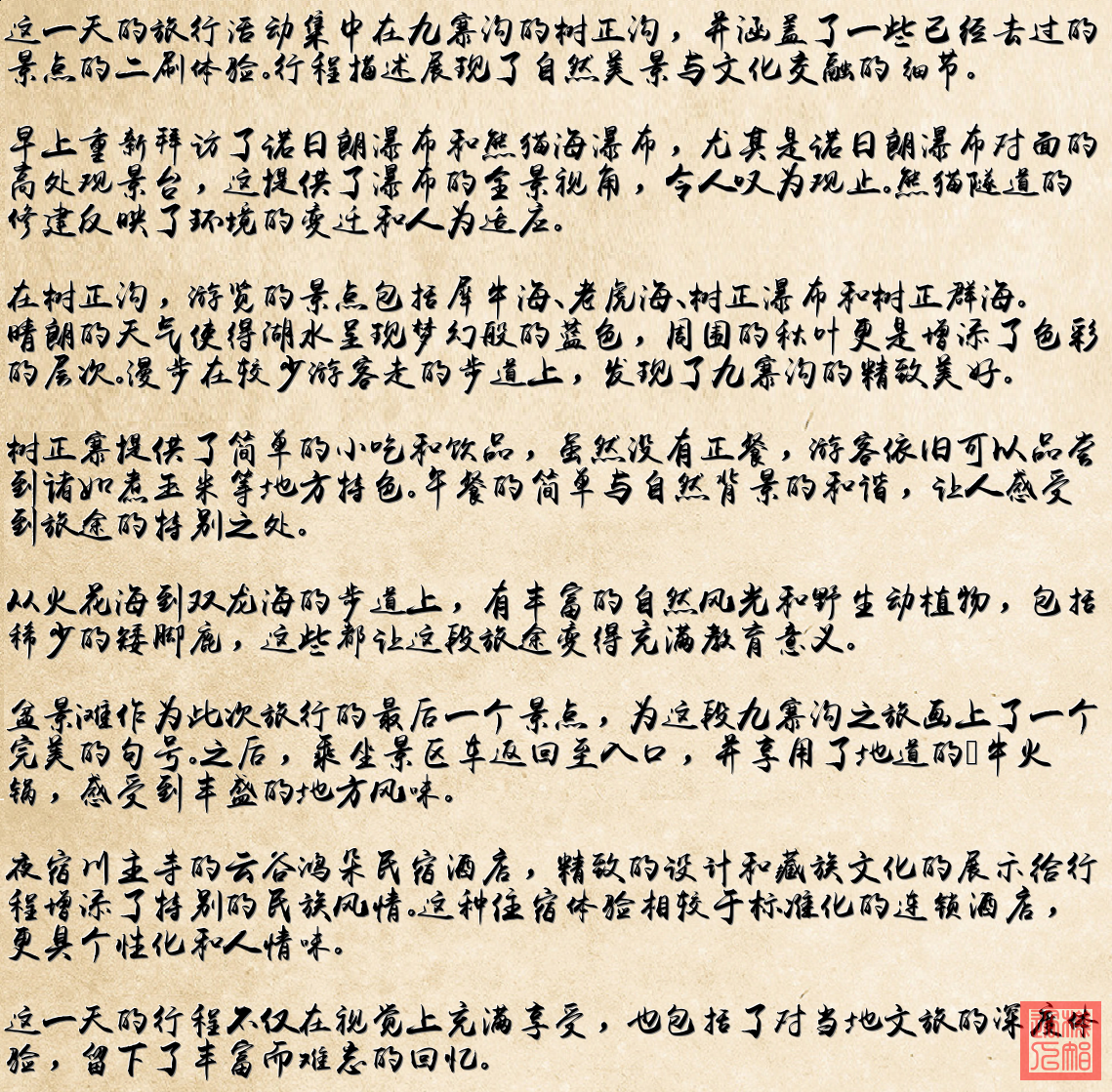 - 瀑布:诺日朗瀑布和树正瀑布。