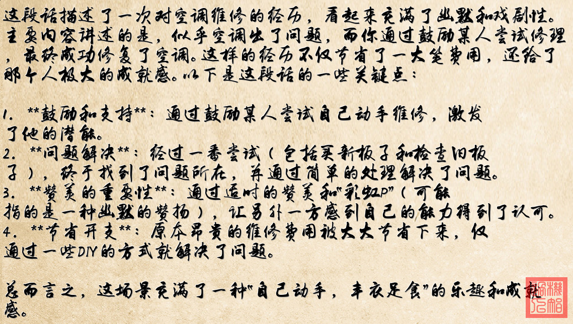 - 最终,空调又可以正常运行,省下了一笔费用。