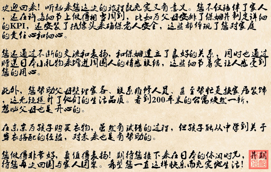 乘着晨雾越过东海线 行李箱滚过新泻的稻田 一万七千円的月光沉甸甸 化作商务舱云端的惦念 从宁夏沙漠到南疆的边关 边防证困住异国的语言 司马台长城青砖叠九转 唯有泉州巷口免票券 翻墙软件卡在防火墙中间 邮箱里飘着未读的焦灼 你皱眉盯着转圈的画面 我笑着收起身份证件 给保姆的KPI表格画得圆 少油少盐的食谱改三遍 摄像机在客厅温柔眨眼 云朵里存着安心的诺言 断舍离扔掉的旧光阴 在200平公寓里长出新的天 装修师傅收下额外的红包 表扬信在业主群飞旋 优衣库的衣裳堆成彩虹山 试错青春本该如此鲜艳 东京月光照着下次行囊 两头奔赴是甜蜜的循环 口红在陌生掌心开出花 松紧带缠着人间的暖 你说这趟旅程麻烦不断 我却数着星斗说圆满 (白) 看遍关山千万重 最难是心意相通 半袋新米半襟风 两头牵挂都郑重