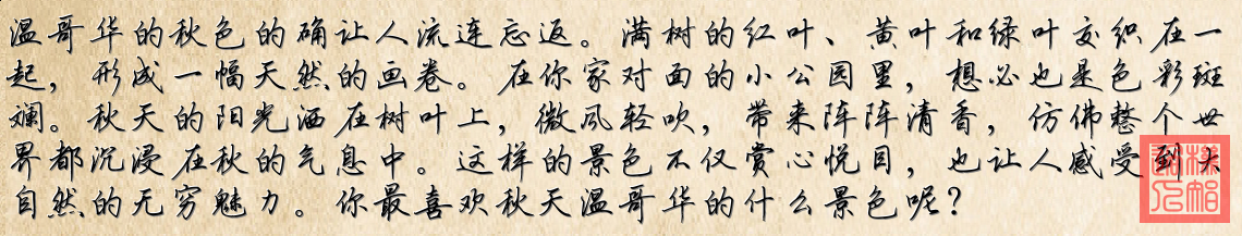 恭喜获得10点赞,更多点赞在路上。这些图片展示了温哥华的秋季景色。在这些照片中,可