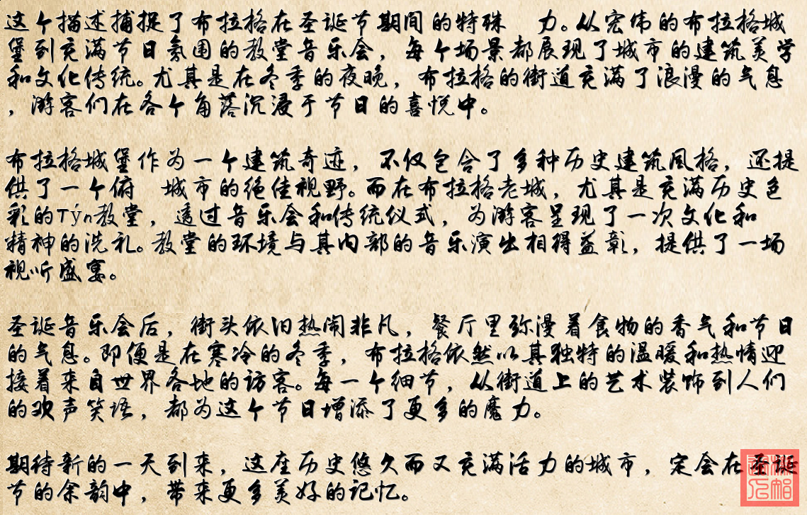 这些图片共同展现了布拉格的建筑美学、历史文化氛围以及节日期间的热闹景象。没有关于新闻的具体描述,主要是旅游观感和建筑欣赏。