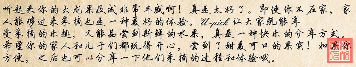 看起来你收获了非常新鲜的火龙果!从图片中可以看到,一个切开的红皮白肉火龙果被放在案板上,果肉上有黑色的小籽。旁边还有一些去掉的果皮。这次收成让你的家人乐在其中,可以不在家也收获喜悦。这样的亲子活动确实很有趣,尤其是 U-pick 的过程。希望你和家人能享用这些美味的火龙果!