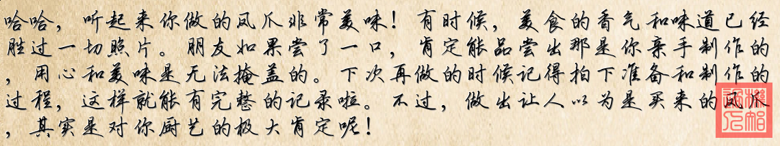 从图中可以看出,描述中的凤爪看起来和买来的东西没什么区别,做得非常成功。