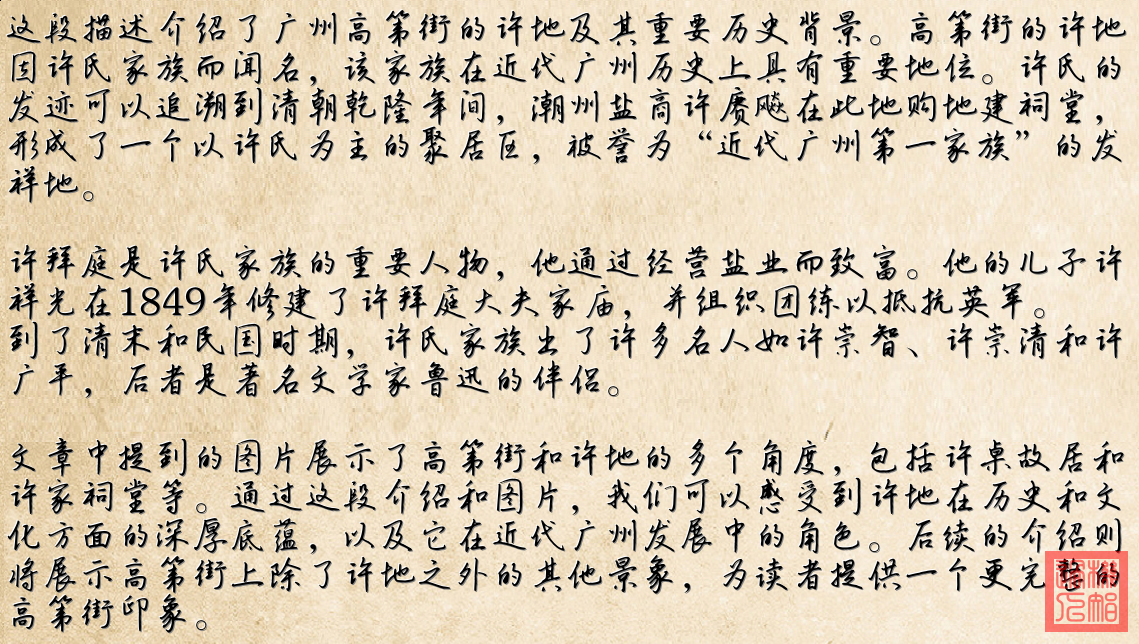这些图片共记录了高第街和许地的历史和文化背景,展示了这一地区作为广州近代历史名片的重要性。
