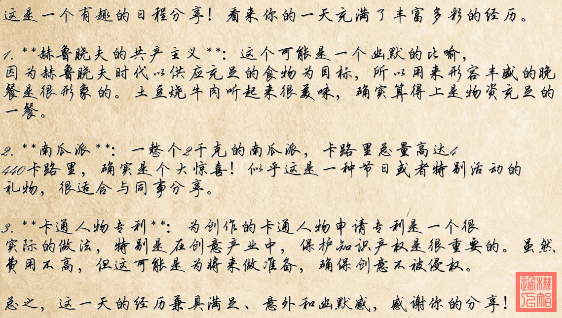 这些信息显示了一天中的一些趣事,从美食到创造性的卡通设计,各有特色。