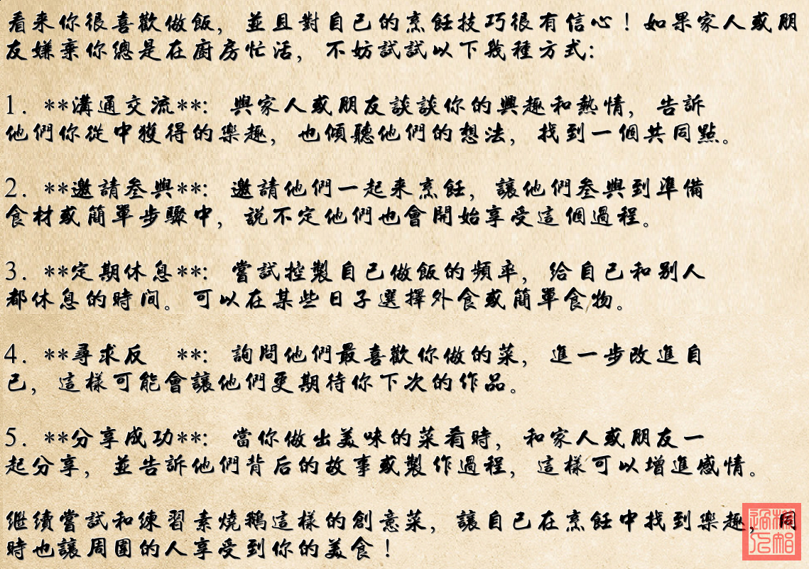 如果混混嫌吵,那可能需要沟通或找机会一起分享美食,看看他们是否会被这道素烧鹅的美味所吸引。继续享受烹饪和分享的乐趣吧!