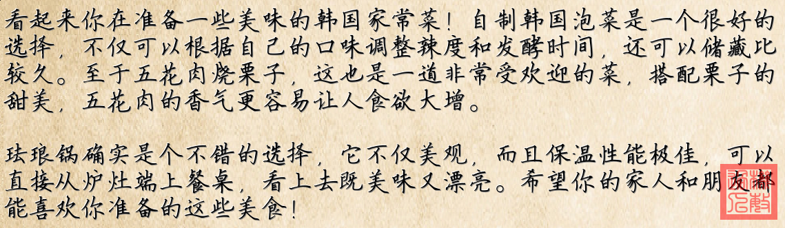 1. **第一张图片**展示了几盒自制的韩式泡菜。泡菜已经腌制好,准备送给朋友品尝,只留了一盒给孩子。