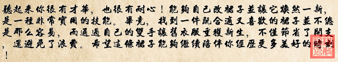 深色波点像星子散落夜晚, 蕾丝边藏着未完的梦。 你说它旧了,该躺在橱窗里等待, 我却听见针脚在轻轻呼唤。 拆开腰线里紧绷的时光, 让呼吸和布料一同舒展。 镜子前转身,风忽然变得柔软—— 原来我双手能接住月亮。 不必霓虹照亮新的橱窗, 旧衣裳里住着新的山川。 每道褶皱都记得来时的路, 我用指尖把春天重新丈量。 线头缠绕成自信的纹样, 旧裙子飘成年轻的帆。 这世上最奢侈的亮片啊, 是灯火下不认输的勇敢。 当世界催促着丢弃与追赶, 我偏要慢慢缝补自己的光。 一针穿过叹息,一线系住晴朗, 原来最美的设计叫:不必换。