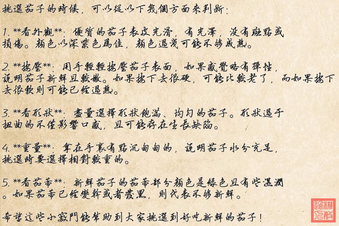 对,就是一个少妇去菜市场做这些步骤挑茄子,想想就美好~~~
