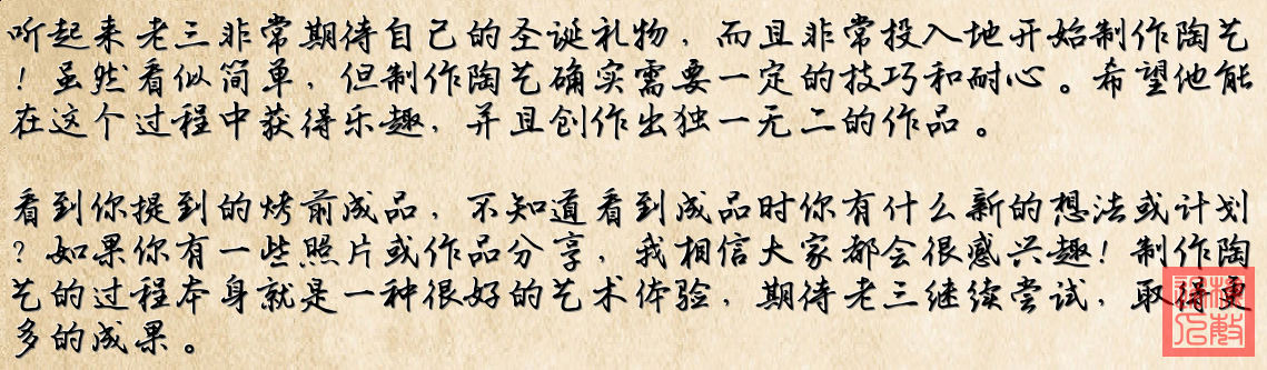 1. **第一张图片**:展示的是陶艺创作的早期阶段。可以看到一个陶艺套件中包含的工具和材料,如陶土、工具刀和搁板。背景的桌布暗示这是在家中进行的陶艺活动。