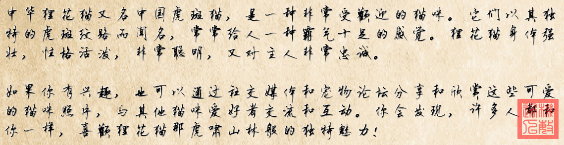 《狸影风华》 虎纹烙在月光织的绸缎 脚步丈量青石巷的悠长 木栏上轻点 如踏水墨山峦 回眸时抖落一身晨霜 车顶借得半寸斜阳梳妆 琉璃眼倒映云絮的流浪 水泥地斑驳 走出梅花印章 卧成古画里未干的诗行 帅是穿过弄堂的风自知晓 把骄傲藏进竖起的尾巴梢 瓦当记得你巡视的轨迹 优雅不过转身时弧光 帅是闯入镜头的星子闪耀 将从容谱成呼噜里的曲调 岁月吻过你额前“王”字纹 传说在爪尖轻轻挠