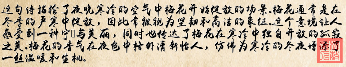 《寒夜梅信》 ——观夜梅图有感 墨色漫过三更天 疏影斜斜叩窗沿 忽有暗香浮袖边 原是冰魄破霜帘 一点胭脂凝月魄 半枝玉骨立风前 休言人间春信晚 星子垂眸已千年 寒刃雕琢玲珑蕊 夜露淬成琥珀肩 纵使未遇识花眼 也向孤山寄云笺 待得深雪埋旧径 自有新蕊绽眉尖 莫问明朝香几许 且看幽独照灯前