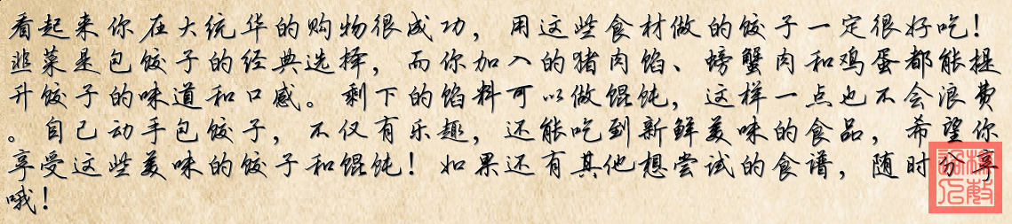 - 多出的馅料将用于第二天做馄饨。