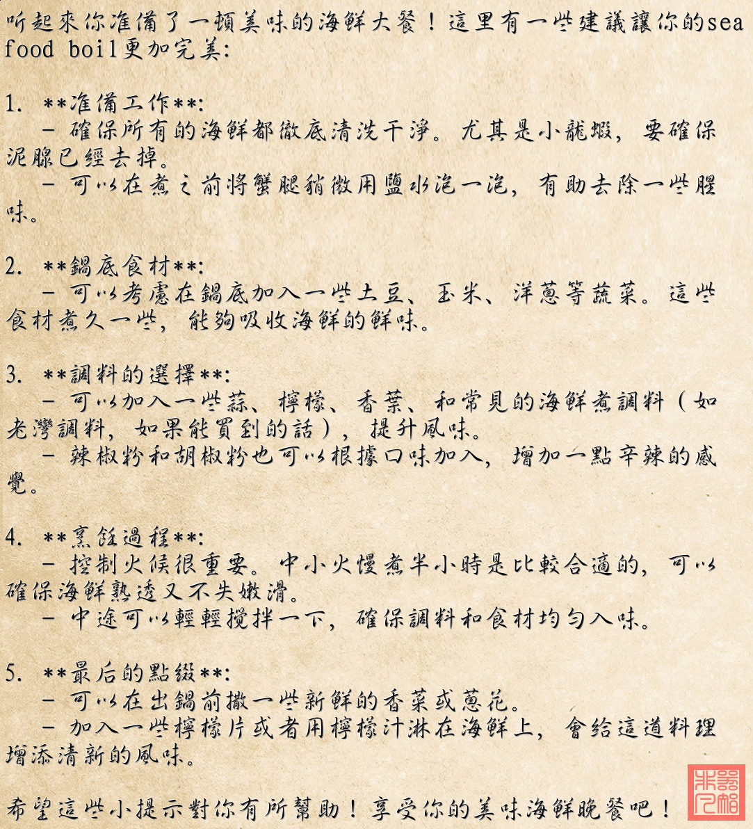 《沸腾的海洋》 玉米金黄 土豆滚烫 香肠在锅底铺满星光 雪蟹腿轻轻冲洗浪花 青口贝藏着潮汐的沙 小龙虾披着晚霞红装 啤酒泡沫吻过铁锅沿 洗过的水沉淀着月光 所有滋味在蒸汽里旋转 半小时的等待像潮涨 锅盖下藏着整片海洋 当香气推开厨房的窗 我们围坐成岛屿模样 手指沾染海盐的芬芳 笑声比贝壳更脆亮 这一锅沸腾的人间烟火 让平凡日子泛起粼光