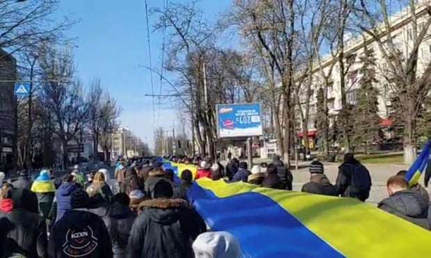 People protesting against Russia's invasion of Ukraine in Kherson. Photograph: Reuters