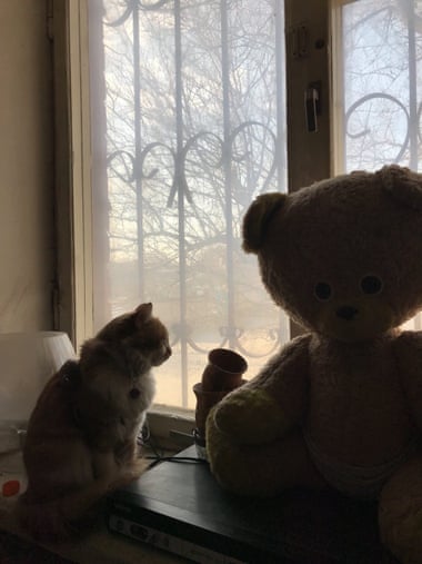 Olha’s cat, Venera, watching the streets outside from a window. Photograph: Olha/Guardian