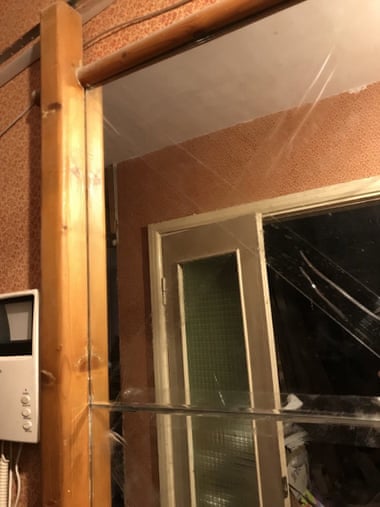Tape is stretched across all mirrors in the flat. Photograph: Olha/Guardian Community