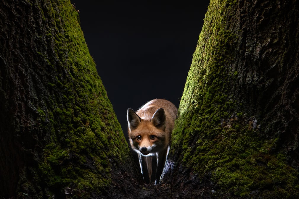 Radisics says: ‘Over eight months, I spent almost every night sitting at the window of my cottage in the middle of the forest. The young vixen appears in the village after dusk, circles an hour and a half, and appears in a courtyard several times. I observed her movements and behaviour from the darkened room, and took the exposure remotely. I named her Roxy. I set the lights in advance, like in a studio, and waited for the protagonist to walk into the scene’