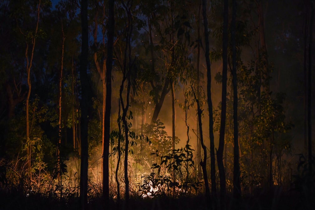 A small wildfire burns at Bouchat near Weipa in far North Queensland. Severe storms and widespread flooding across eastern Australia and elevated fire risks in the Northern Territory are predicted for the coming months, with a third successive La Niña weather pattern also likely
