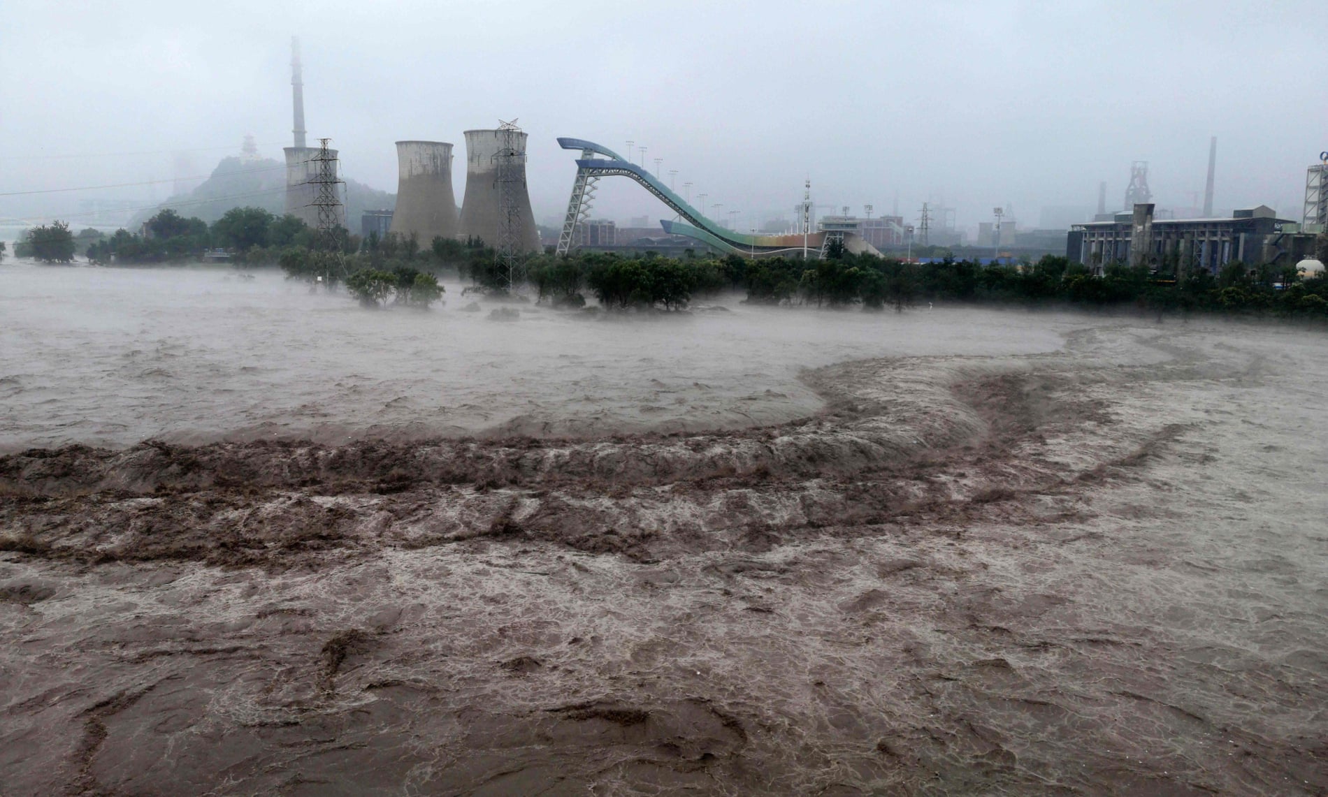 The Yongding River breaks its banks after heavy rains in Beijing.