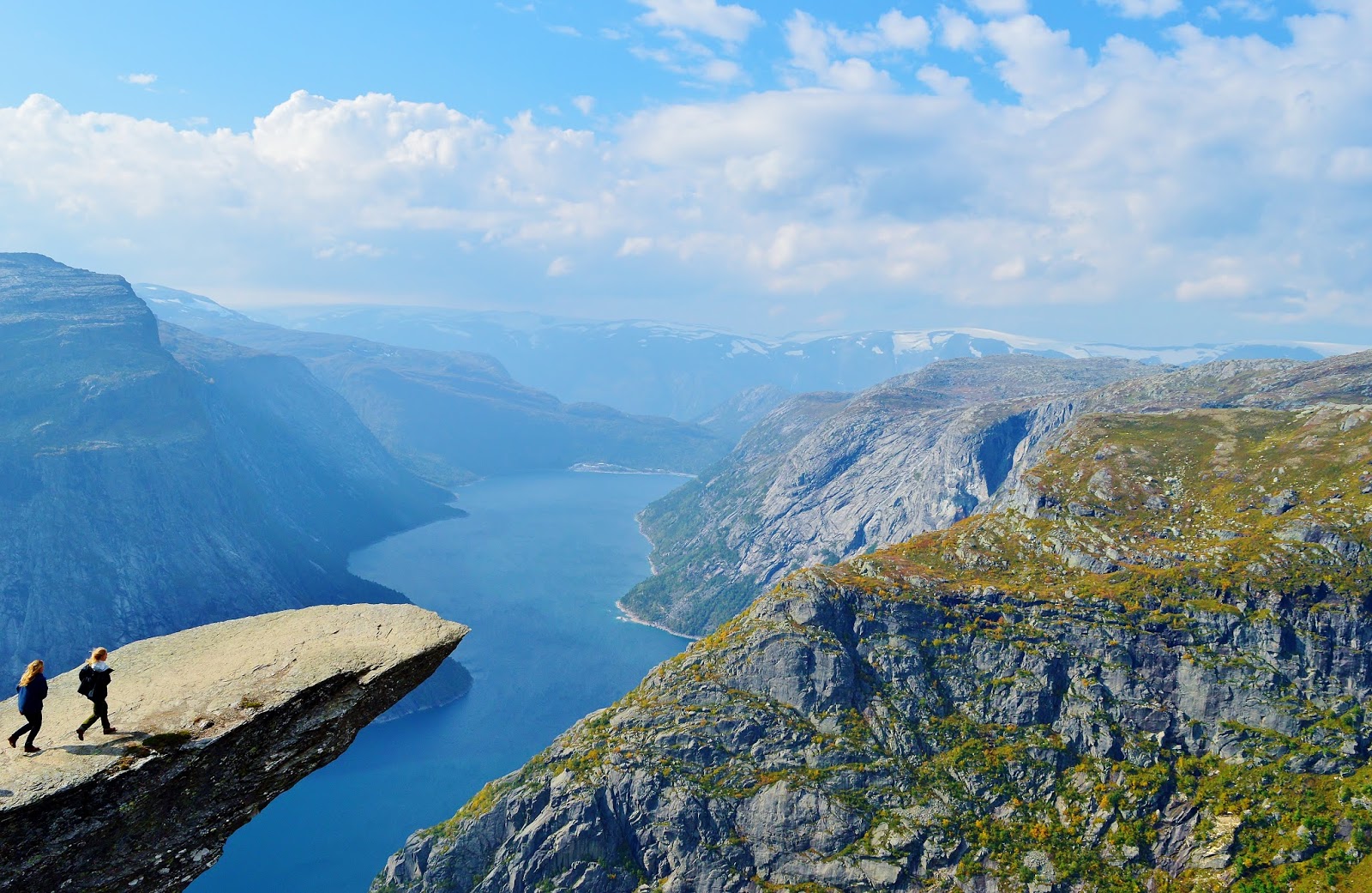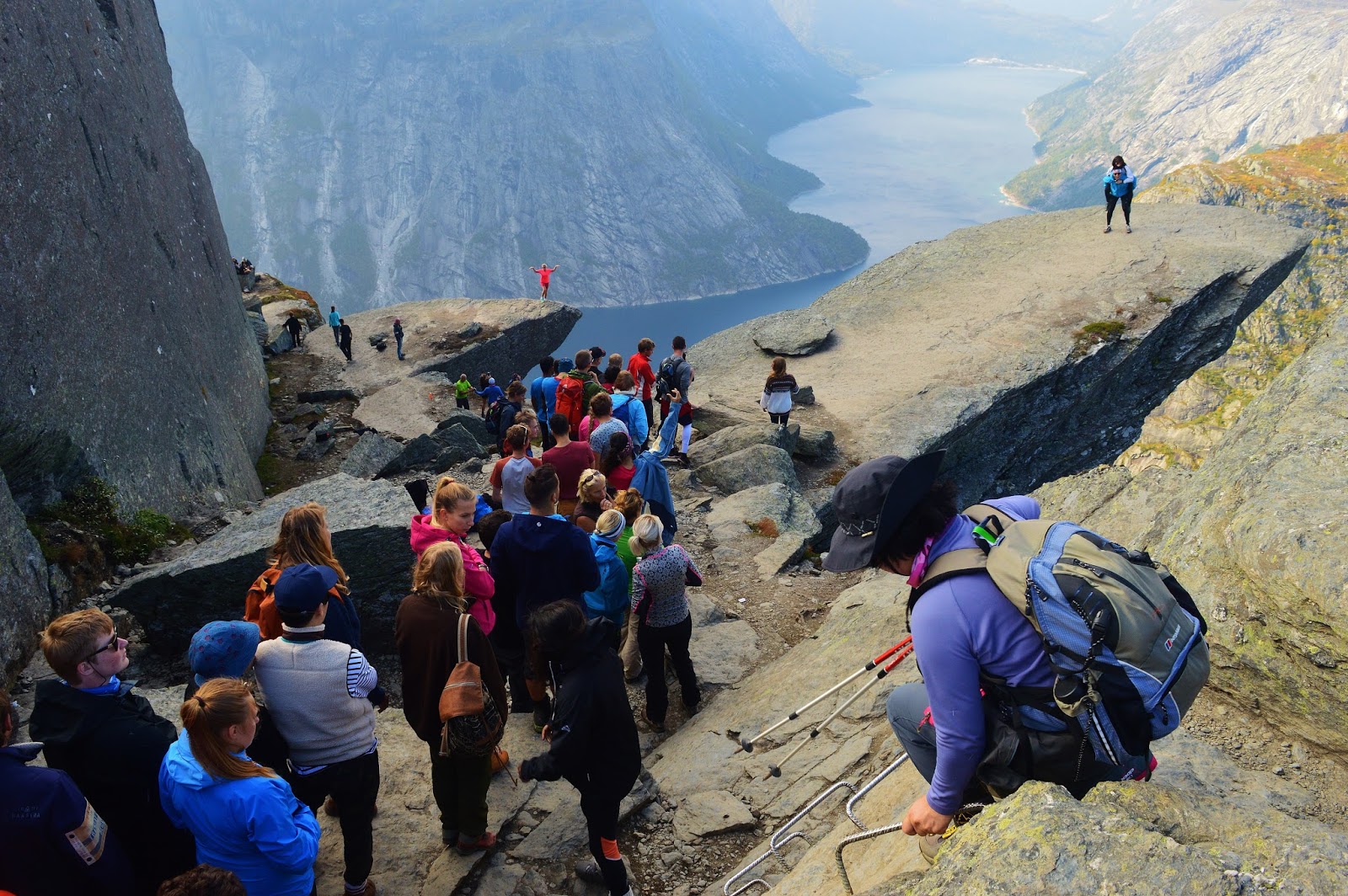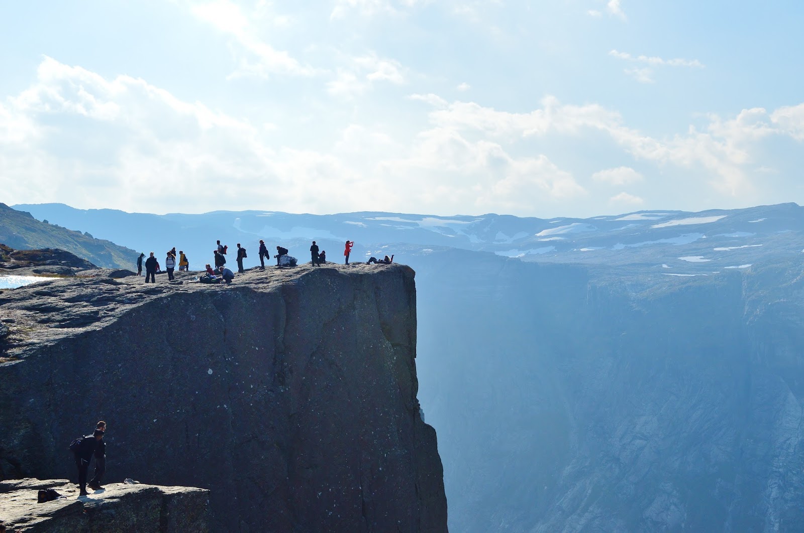 Hiking Trolltunga can be one of your life highlights. This is the most epic hike in Europe, long and tough, 22 km one day round trip with 900 meters elevation, taking 10-12 hours to complete. Trail is muddy, rocky, and available only in summer, when the snow covering the road melt away. You have to be physically in good shape and well prepared to hike Trolltunga, since the trail is in wild and no cellphone coverage, electricity or medical support along the route. First you got to be strong enough to come back before dark; it's a bad idea to lost yourself in a remote and chilly mountain at night. Apart from that daylight is short in Norway, and weather is very volatile. Also you need to be well equipped, and careful when up the steep cliff side. Once anything gone wrong, the only way getting out is to turn around and walk back. Search and rescue effort take place every year for hikers in serious trouble. Most recent death happens in 2015, when an Australian young lady fell off the cliff. Once you get start, your life will be in god's hands.
