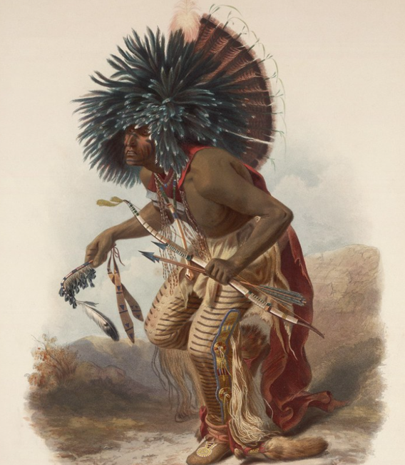 穿着传统服装的印第安人男子 (by Karl Bodmer)
