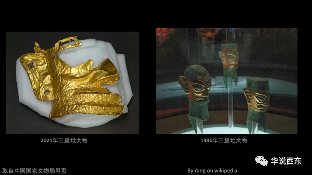 其中,青铜树、21件青铜器人面像异常夺目。这些形态风格与中原文化迥异的文物,掀起了“本土论”、“西亚”论,甚至“外星人论”的舌战。