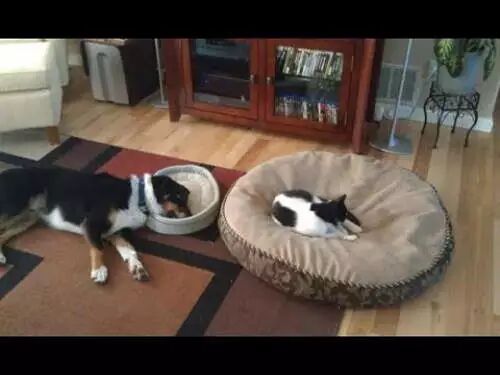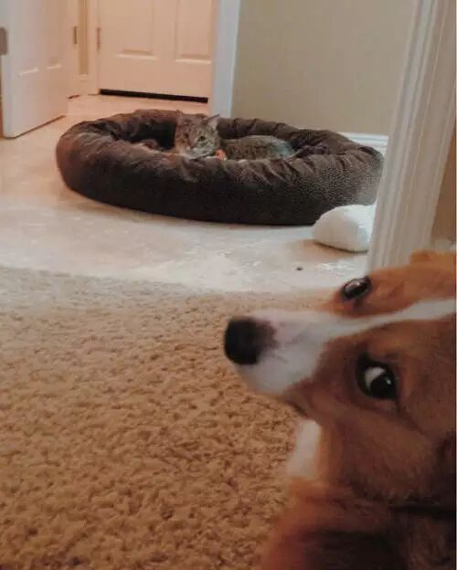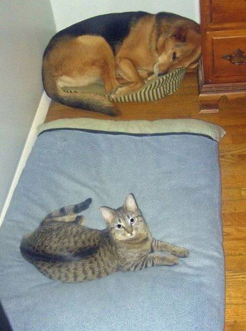 喵:别说我没照顾你,让你睡我旁边,感恩吧你~