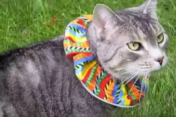 戴“鸟安”的猫 图片来源:www.mirror.co.uk