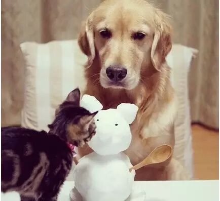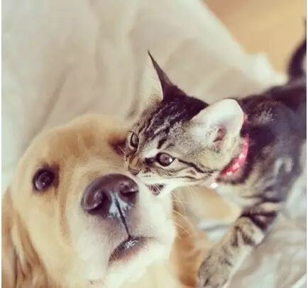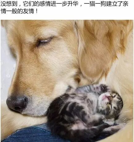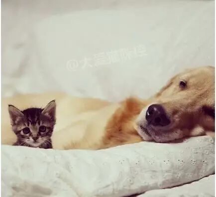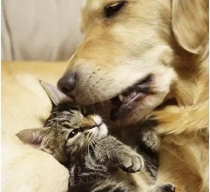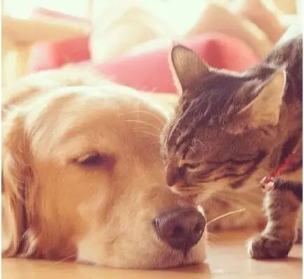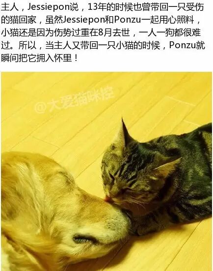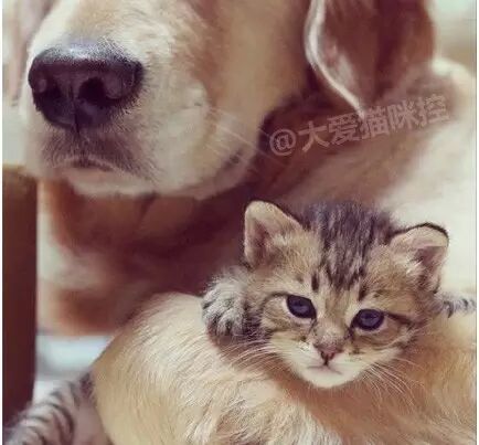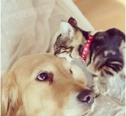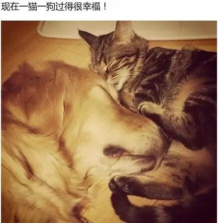 我也是,看到后眼睛都湿了,好可爱的金毛和好幸福的猫咪。