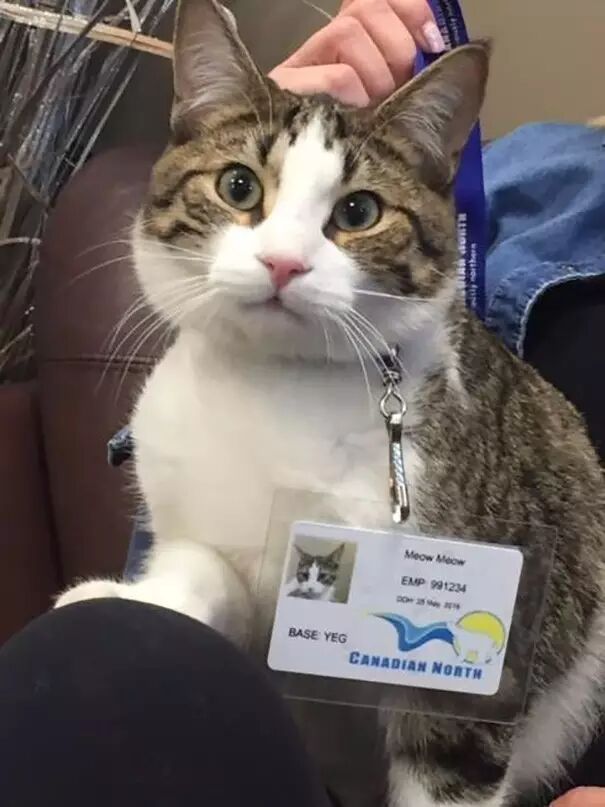 这只喵星人Meow Meow的主人住院生产了,把它暂时托付给航空公司照顾,于是职员们还特地给它弄了个工作证,允许它在公司里自由出入。