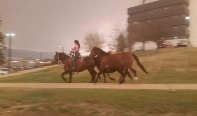 这个女孩没来得及收拾任何东西,第一时间牵出自己的马,干脆骑马逃生。