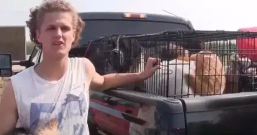 这个少年把家里狗狗们的笼子装上车,开车四处救宠物,能救一个是一个,救了满满一车。