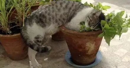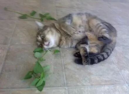 大约有50%的猫对该草叶的气味很感兴趣,喜欢抓咬,但这不表示猫必需食用猫薄荷才能维持健康。 事实上,猫薄荷是一种会引起幻觉的植物,猫食用后有些会引起暂时性(5-15分钟)的行为变化,例如会打喷嚏、咀嚼、摩擦、翻滚、喵喵叫、发谵语等。有些猫吃了猫薄荷之后会追逐幻想中的老鼠、有些则呆坐着空茫地瞪着眼,这些行为并不会造成任何危害,樟脑草也不具成瘾性。 总之,猫薄荷对猫的健康并没有实质上的帮助和危害。